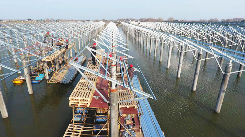 圖一:由大密項目部參加安裝施工的水上漂浮式光伏電站的一角
