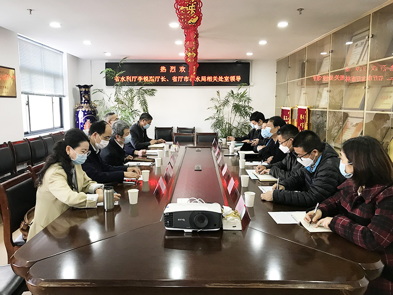 2月25日,省水利廳領(lǐng)導(dǎo)李銳副廳長、政法處盧健國處長、省水利科技推廣中心陳毛良,杭州市林水局領(lǐng)導(dǎo)陳劍鋒處長、張麗虹一行來到公司開展走訪調(diào)研活動,公司董事長黃文杰、總經(jīng)理夏洪濤、副總經(jīng)理邵中祥、鄭斌等接待了走訪組。