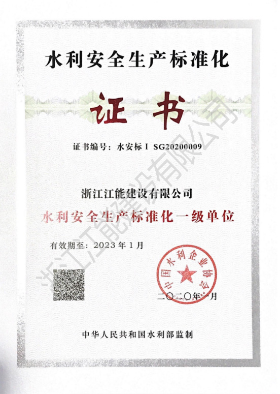 近日,公司安全生產(chǎn)標(biāo)準(zhǔn)化一級(jí)達(dá)標(biāo)創(chuàng)建工作通過(guò)水利部評(píng)審,并獲得“水利安全生產(chǎn)標(biāo)準(zhǔn)化一級(jí)單位”證書。