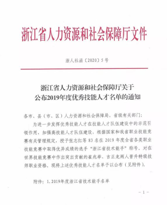 日前,浙江省2019年度優(yōu)秀技能人才名單公布,我公司員工錢曉良、謝亨勇同志在第八屆全省水利行業(yè)職業(yè)技能競賽暨第三屆全省水利工程標(biāo)準(zhǔn)化管理職業(yè)技能競賽中表現(xiàn)優(yōu)異,榮獲“浙江省技術(shù)能手“稱號(hào)。