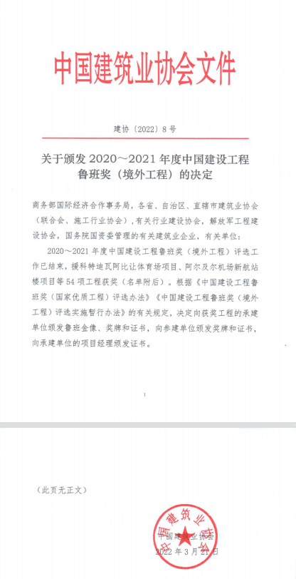 人間四月芳菲盡,山寺桃花始盛開。在這美好的四月,迎來一個振奮人心的好消息:公司參建的越南油汀600MW(DAU TIENG)光伏發(fā)電項目獲得了2020-2021年中國建設(shè)工程境外魯班獎,這是公司獲得的首個境外參建項目魯班獎,也是獲得的第四個魯班獎。除此之外,該項目還獲得了2020年度中國電力優(yōu)質(zhì)工程獎。