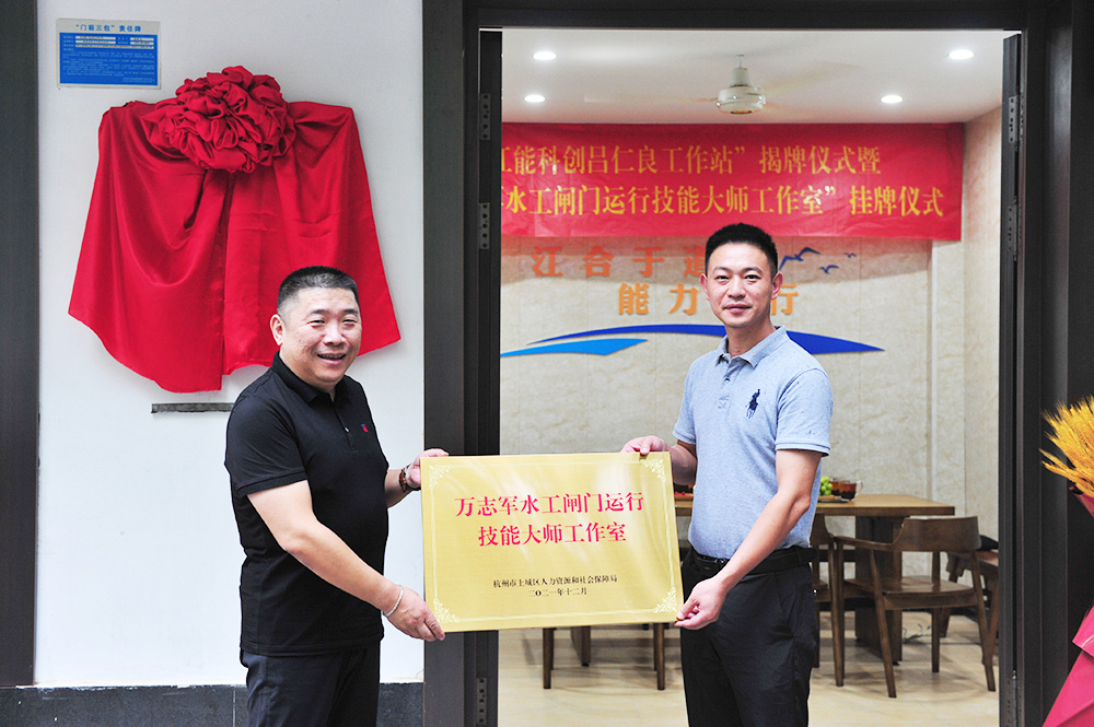 8月17日下午,公司“江能科創(chuàng)呂仁良工作站”揭牌儀式暨“萬志軍水工閘門運行技能大師工作室”掛牌儀式在新昌縣順利舉行。