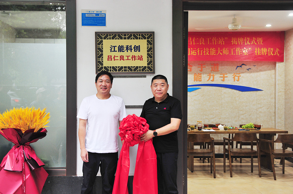 欽寸水庫董事長俞超群、總經(jīng)理夏洪濤為“江能科創(chuàng)呂仁良工作站”揭牌